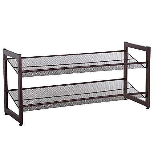- [Adjustable Shelf – Set It up Your Way] The inclination of our shoe organizer rack can be adjusted to flat or angle according to your preference. The dense, metal mesh shelves and baffle design prevent high heels from falling for easier access to shoes