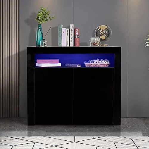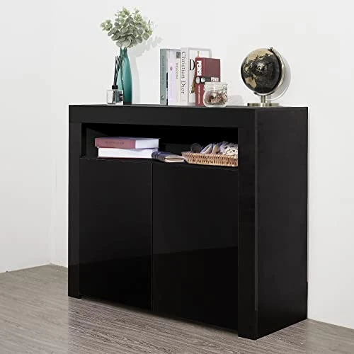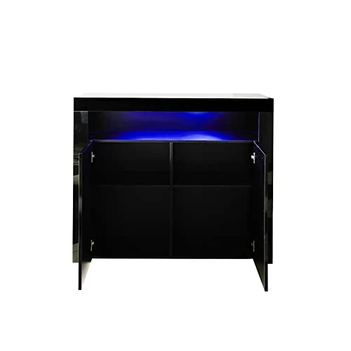 - MODERN WOOD HIGH GLOSS SIDEBOARD: this wooden sideboard is made of 16mm E1 particleboard, the LED unit cupboard cabinet is high gloss effect finish to the front of the unit (including doors and front panels); the rest of the body in a matt finish, contemporary and stylish.