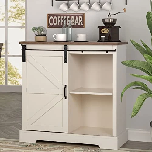 - Sliding Barn Door: The kitchen buffet cabinet provides 2-tier shelving solution with easy access to either side through the sliding barn door. Combined with open and closed storage spaces to allow you to store flexibly. Whether it’s for a coffee bar, kitchen, living room, dining room, it can be a perfect storage cabinet to make your home neat and organized