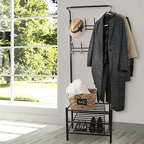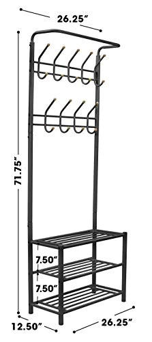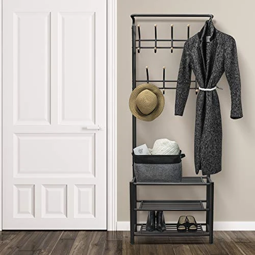 Sorbus Coat Shoe Racks Bench – Hallway Entryway Coat Rack With Storage – Shoe Bench Organizer Features 18 Hooks And 3-Tier Shelves, Metal (Coat Rack – Black)