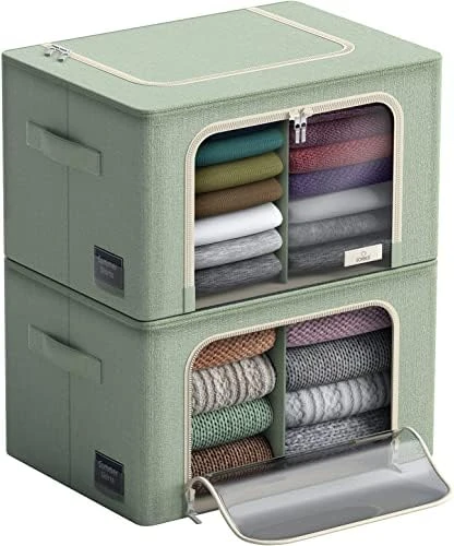 - STACKABLE & FOLDABLE – Sturdy frame stacks above & beneath additional organizers – Collapses flat for easy storage when not in use – Suitable for shelves, large chests, closets, buffet hutches, garage, basement, attic, or under bed in home, office, dorm – To assemble, simply expand metal frame that pops open into large storage cubes