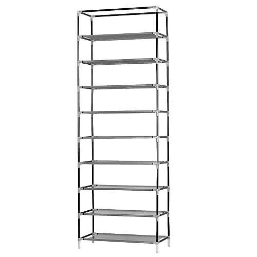 - 【Sturdiness & Durability】- Max Load Capacity 100 lbs, the 10-tier shoe organizer is carefully designed and finely crafted with selected stainless steel tubes and plastic connectors.Durable and Sturdy for Long-term Daily use, Value for money