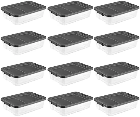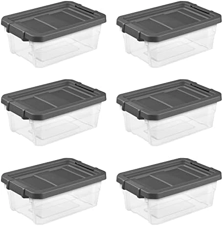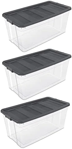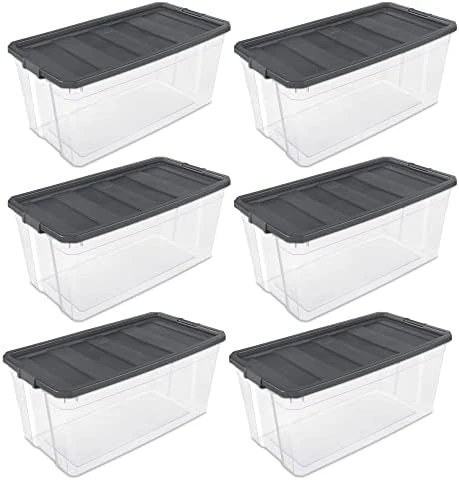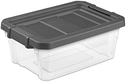 - Storage tub features modern, space-saving shape and innovative latching lid for easy access to stored items