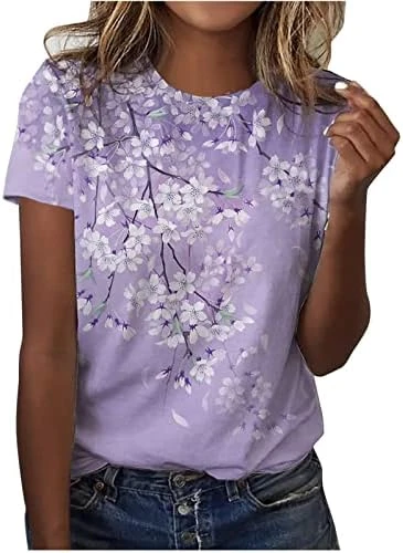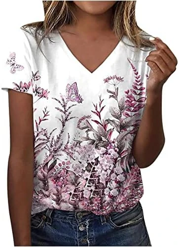 Welcome to Attine store for more choice on women clothes.Summer Tops for Women 2023 Floral Printed Round Neck Shirts Casual Short Sleeve T-Shirts Slim Fit Loose Workout Blouses