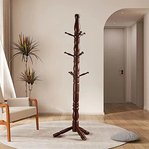 - 【Thoughtful Design】This coat hanger has 9 hooks, and all edges are well polished and no burrs, make sure your clothes won’t slip off or get hooked; 360° full angle freestanding hanging; this wooden coat rack stand is great for you and your family