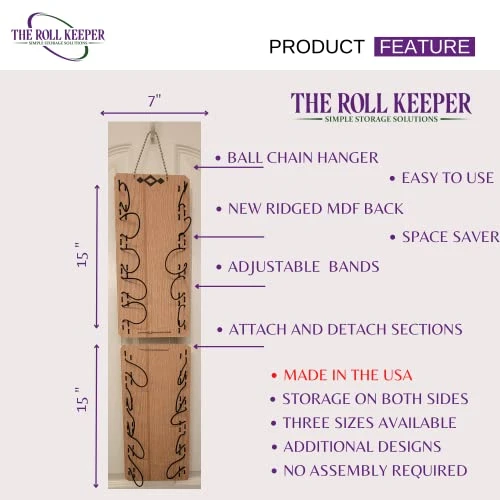 - NO ASSEMBLY REQUIRED- The Roll Keeper comes ready to use. We use a ridged hardboard NOT PLASTIC.