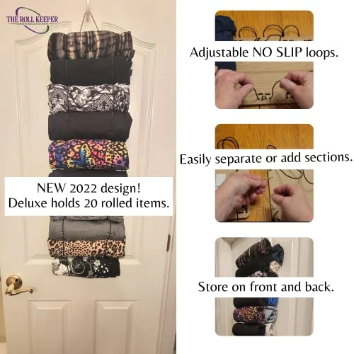 - STORES 20 ROLLS- Our large size is two attached sections that hold 20 rolls. Our Extra Large size holds 12 extra large rolls such as towels, hoodies and sweaters.