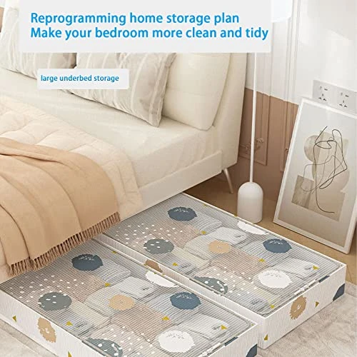 - 🎈【Easy to install】The simple structure is easy to open and close, and can be assembled in 2 minute. The foldable design allows this underbed organizer to adapt to a variety of scenarios such as home, rental, college dorm and moving. It is a large under bed clothes storage bins when you need it and can be folded up to save space when you don’t need it.