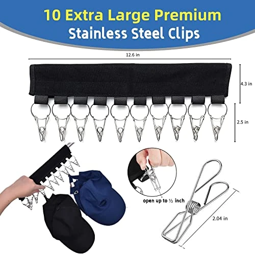 Tidyliving 2 Pack Hat Organizer, 10 Stainless Steel Storage Hooks, For The Storage Of Hats In The Closet And Room, Replace Your Hanger With A Hat Organizer, Suitable For Standard Size Hangers (Black