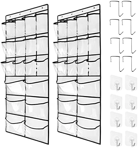 - 【2 Pack Over the Door Organizer】with 6 roomy and large PVC pockets+12 PVC pockets, hold more than 12 pairs shoes to free up floor/shelf space.