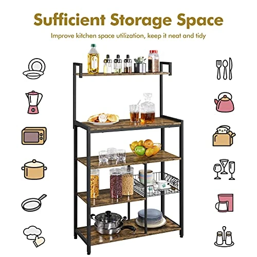 - SOLID & SELECTED MATERIALS: Crafted from CARB Phase 2 compliant manufactured wood and powder-coated steel frame, this baker’s rack boasts high strength and durability and will bring you no worries about the harmful emissions at all.