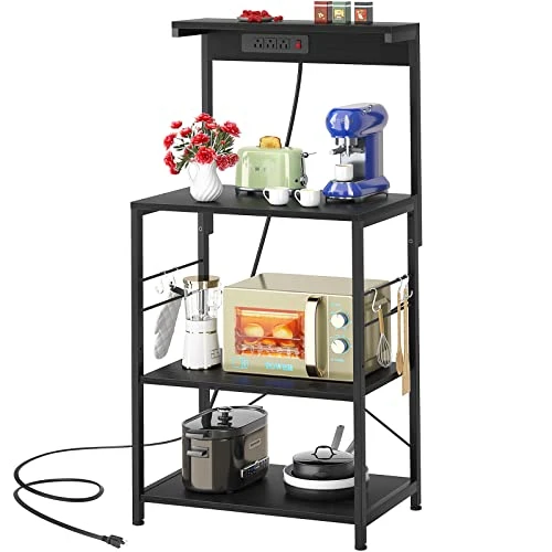 - 【Super Sturdy Construction】4-Tier Kitchen Bakers Rack is made from high-quality P2 MDF Board and metal frame to offer each tier large weight capacity over 50lbs. The X-bracing design offers a large weight capacity which provides more support and ensures stability and durability.