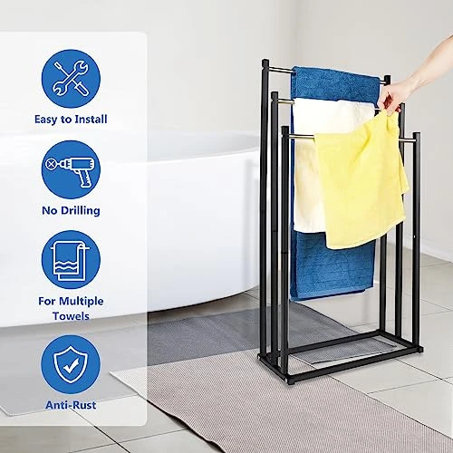 - MULTIFUNCTIONAL: Perfect bathroom towel racks, hand towel rack, hotel towel rack, towel holder stand, next to the tub towel rack and blanket rack. Arrange your towels however necessary to fit your space!