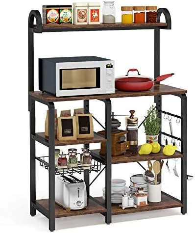 - ✔【5 Tier Storage & Top Hutch】The multi-layer racks provide ample space to store toaster, microwave oven, coffee maker, food spices, dishes, cooking utensils and fruits. The long top panel can hold a microwave oven and other kitchen appliances. Well-designed distance between each tier is high enough to accommodate big stuff.