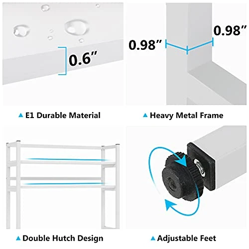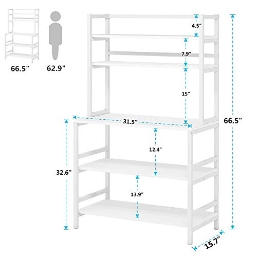 - 【Large Countertop & Hutch Design】The 31.5″ L x 15.7″ D tabletop provides a lot of work area for your oven, microwave and other kitchen supplies. Hutch designed ideal for displaying your favorite cookbooks, jars of spices, and canisters of dry goods, placed on the upper layer so as not to get wet.