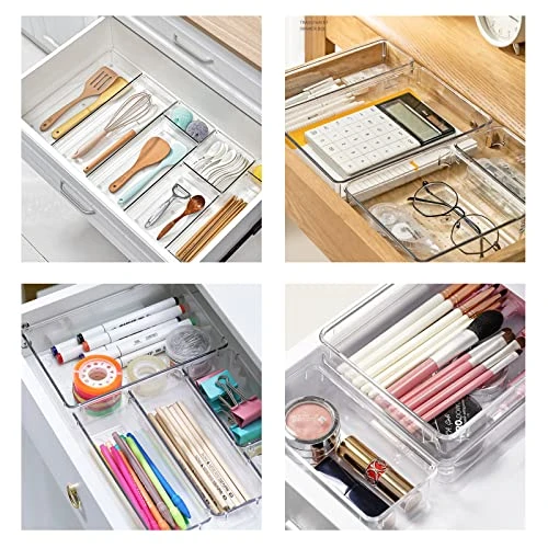 - 【Wide Application】Makeup drawer organizers are suitable for kitchen drawers, dresser drawers, desk drawers, vanity drawers, pantry drawers. Perfect for kitchen, bedrooms, bathrooms and offices.