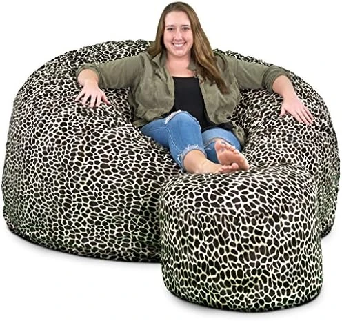 - ULTIMATE SACK 6000 w/ FOOTSTOOL – has material measuring approximately 6 feet in diameter. Depending on the surface of the floor and weight of the occupant, the bean bag chair will be between 60 and 68 inches across, and 34-38 inches in height when fully fluffed. The bean bag chair weights 65-70 pounds. Includes a removable, washable cover. Comes with an unbeatable 10 Year Manufacturer Warranty. Leaves Warehouse in 1-4 Days.
