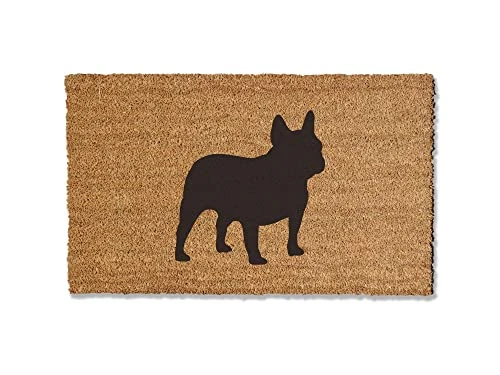 - Black French Bulldog Silhouette Painted on coir doormat for outdoor use.