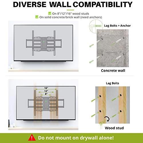 - Easy Installation: Wall mount tv bracket includes bubble level, mounting template, all included hardware in pre-labeled bags for easier and quicker installation. Warm tips: If you need 10X50mm concrete anchors, please let us know to get it.