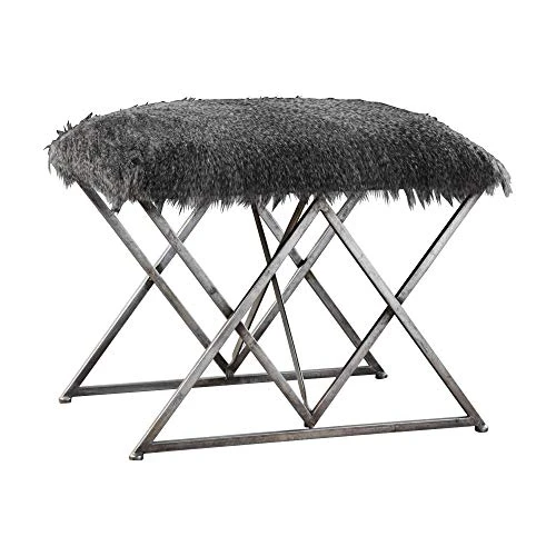 - Plush animal inspired faux fur in multi-hued brown tones atop.