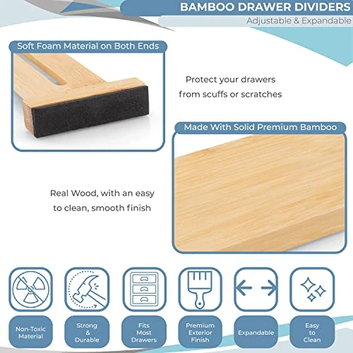 - Premium Material – Beautiful and elegant look. Each divider is made of natural, organic, and renewable bamboo wood. Premium craftmanship and sturdy construction. Easy to clean and maintain.