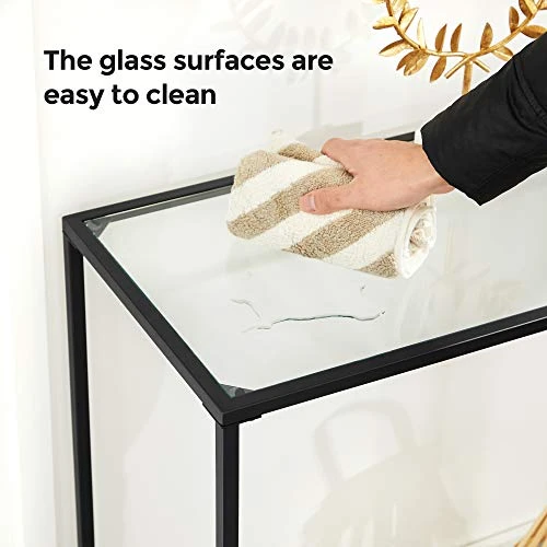 VASAGLE 39.4 Inches Console Table, Tempered Glass Sofa Table, Modern Entryway Table, Metal Frame, Easy To Assemble, Adjustable Feet, For Living Room, Hallway, Black ULGT026B01