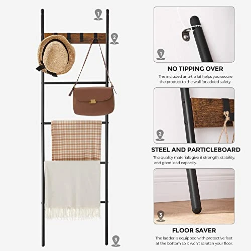 - [Rises with Strength and Safety] Though it’s not made to climb, we still want it to stand firm and hold your most precious blankets. That’s why this blanket ladder is made of sturdy steel and particleboard and secured with anti-tip kits