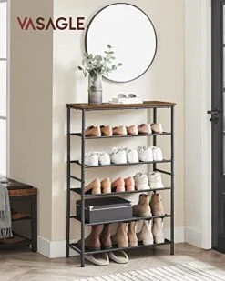- [Sturdy and Stable] A sturdy steel frame, alongside adjustable feet, keeps the shoe rack balanced on uneven floors. The Max load ability of the top is 66 lb with each shelf bearing up to 22 lb. The included anti-tip kit secures it to the wall for added safety