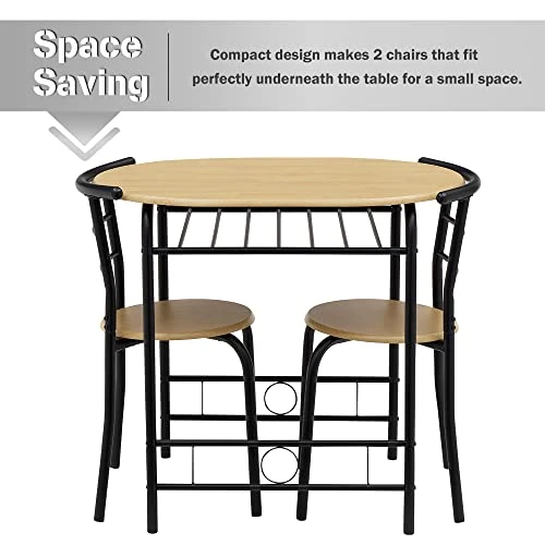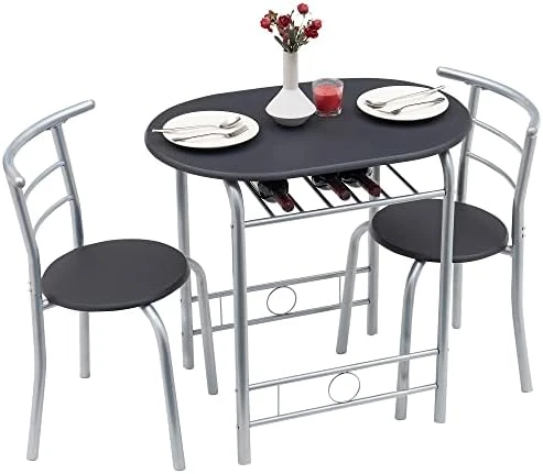 - Versatile Use-This dining table set has a spacious table-top (33.4 x 23.6 inches) and one steel storage shelf, which has enough space for wine bottles, napkins and other essentials. The timeless color scheme and small dimensions make this set perfect for the kitchen, balcony, bedroom, apartment, dorm room, office, temporary activity & party, etc.