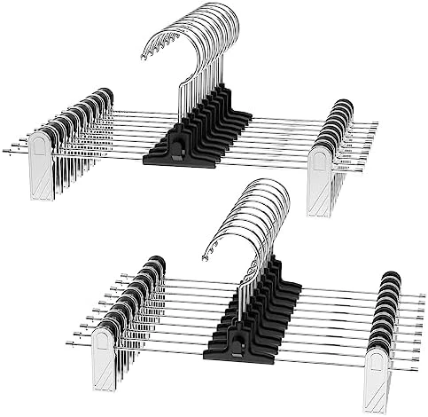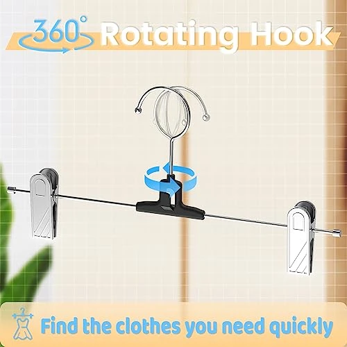 - 【Space-Saving Pants Hangers with Clips】: Hangers with clips can effectively reduce the wrinkles of clothes while using less space. Use your closet space more wisely, thus makes your closet more neat and tidy. You will have a good mood by seeing such well-organized closet whenever you open your closet.