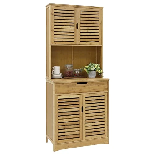 - 【A New Coffee Area】 Use this new kitchen pantry cabinet as a new coffee countertop for your first cup of coffee each morning and to start the day. The kitchen storage cabinet’s spacious worktop allows you to make a big difference, giving you plenty of room in the kitchen storage cabinet to make every cup of delicious coffee or beverage for yourself or your family.