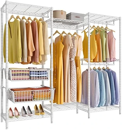 - STURDY & DURABLE CLOSET ORGANIZER: Made of high quality iron, it features stable, sturdy and durable freestanding closet system. Easy access in bedroom, cloakroom, clothing store, laundry room, walk-in closet and more.