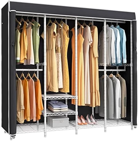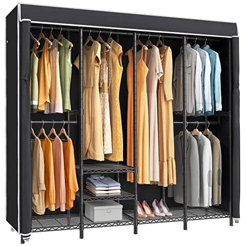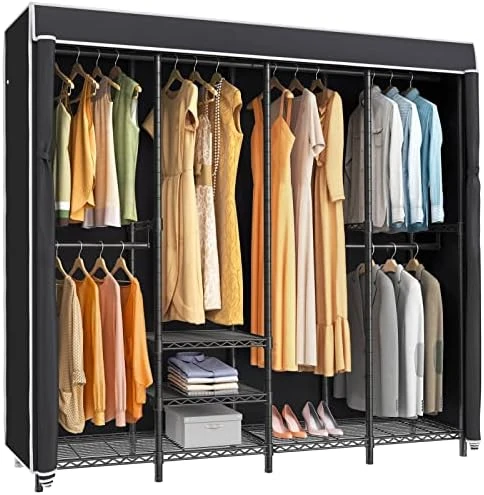 - All-in-one Multifunction Closet Rack: 4 Tiers Extra Large Garment Rack V40 offers you various storage area to place your clothes, accessories, shoes, etc. It features 6 height adjustable shelves for extra storage capacity, 4 detachable hanging bars that easily accommodates to the length and size of your garments.