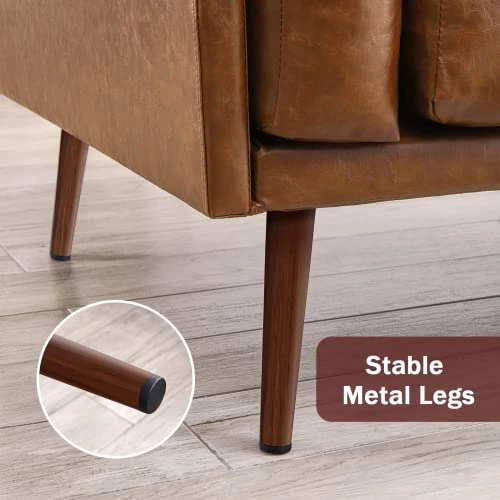 - RELIABLE CONSTRUCTURE: Sturdy eucalyptus wood frame and stable metal legs, vonanda sofa will be sure to last for years.The slender metal legs not only add to its exquisite elegance, but cleaning is also no longer a problem when the sweeping robot can pass easily. Lay the foundation of sophisticated living space with this faux leather brown couch.