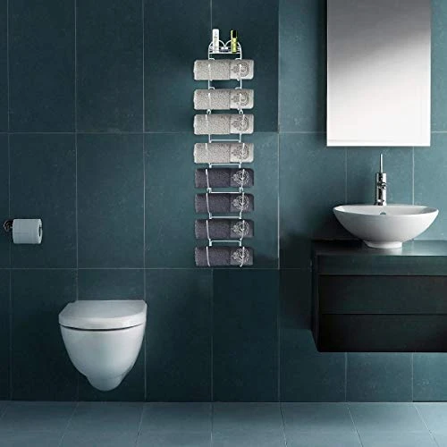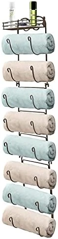 - 【Easy-installed Towel Storage Organizer】This towel storage rack is simple to be assembled and mounted to the wall with the included hardware. To hold multiple-sized towels , just roll them to fit the arms. Urban Deco Tips – try this towel rack organizer in the kitchen or pantry to store wine and champagne bottles.