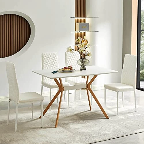 - 【Sturdy Wooden Table】Our dining table with environment-friendly MDF and 4 metal Heat transfer legs, durable and stable, resistant to daily use scratches and water-resistant. The beveled edge of the top avoids injuries to the Child.