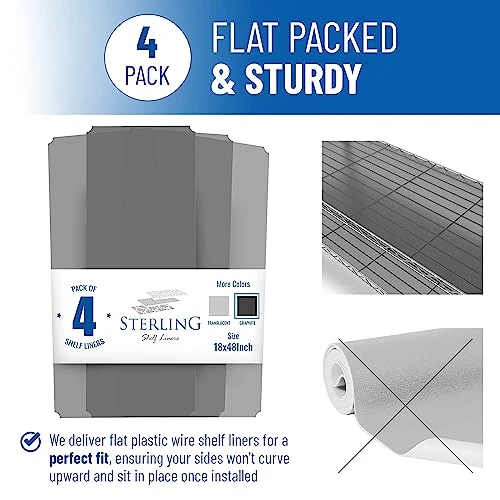 - FLAT PACKED & STURDY: We deliver perfectly flat packaged plastic wire shelf liners to ensure your sides won’t curve upward and they sit perfectly flat once installed. With over 500,000 happy customers, know that you are choosing the best quality wire shelving liner on the market.