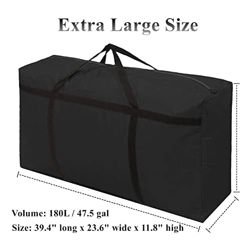 - 【Extra Large Organizer Bag】- Size: 39*24*12 in(180L). Plenty of space to store and pack, the moving bags easy to put in or take out the big items or small. Which can contain like blanket, towels, sheets linens, seasonal clothes, Halloween toys, Christmas tree and ornaments. Pack a lot into one bag! For space saving maximum and a ideal assistant for home organization.