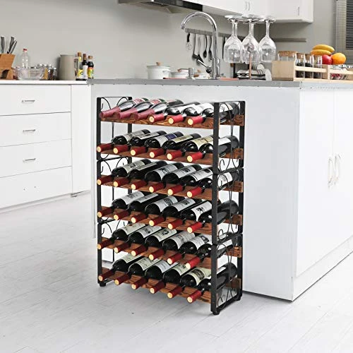 - 【Wave Board Design】- This wine rack is made of thickened wood and metal, which is stable and durable. The wave-wood-board design is made each bottle can be stored slightly tilted to make the cork repeatedly wet, this ensure wine stay fresh longer.