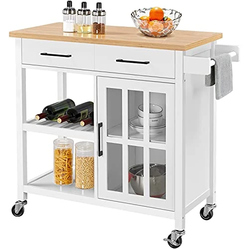 - ELEGANT & VERSATILE: This kitchen island cart sports a classic finish for a neutral and elegant look and works well in both classic and contemporary kitchens. It also serves perfectly as a coffee bar or a place for cocktails when paired with counter-height stools.