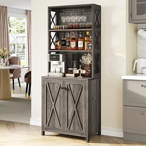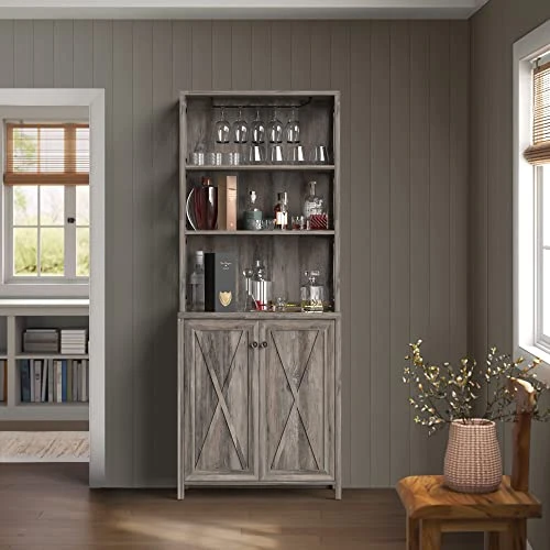 - Rustic style: This bar cabinet with a rustic gray wash finish adds a retro style to your home. Stylish X pattern, retro alloy handle makes your room full of elegant beauty