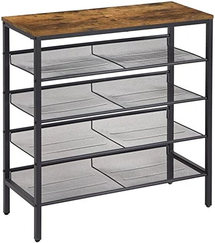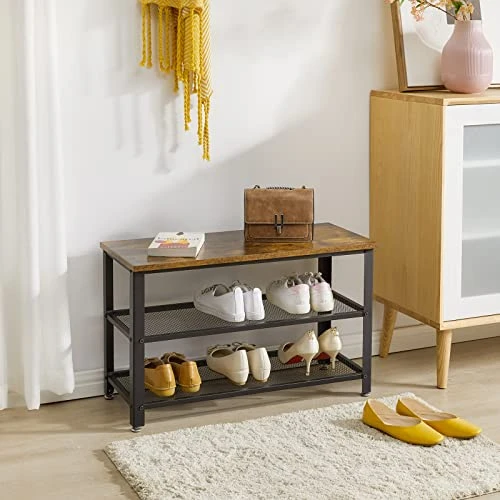 - VERSATILE STORAGE: Two mesh shelves accommodate 6-8 pairs of shoes, top board can be used as long bench or workbag, purse storage shelf. Compact and functional, it will make your room look nice and organized