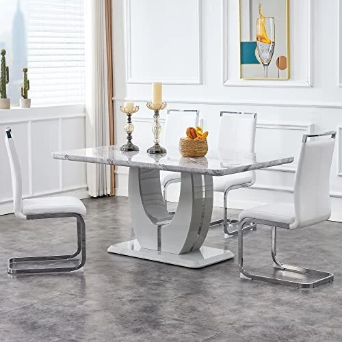 - 【Fashion Design】Unlike other dining tables, our dining table is designed with an ultramodern dining table with a high gloss lacquer finish in a MDF slab U-shaped base will be the centerpiece of your contemporary dining room, very stylish and suitable for the warm home of contemporary young people
