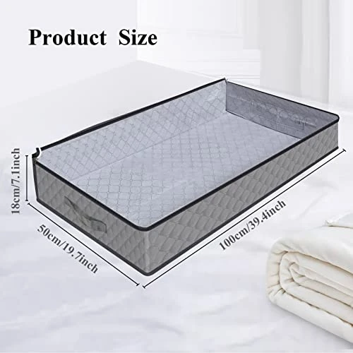 - Large Capacity: Each underbed storage container sized 39.4 x 19.7 x 7.1 inch/100 x 50 x 18 cm (L x W x H) with capacity 90L. Prefect for your comforters, blankets, pillows, plush toys, extra linens or clothing