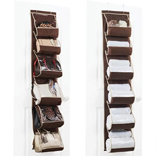 - EASY INSTALLATION: Our purse organizer for closet can be easily hung over any door with no tools required. Just hang our organizer over any door and our strong metal hooks will do the rest.